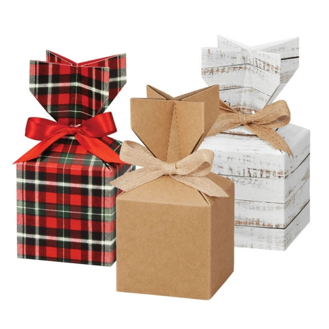 • Styles: Available in various shapes, including square, rectangle, and purse; sizes and closure options, including top tuck and lid and base paper gift boxes