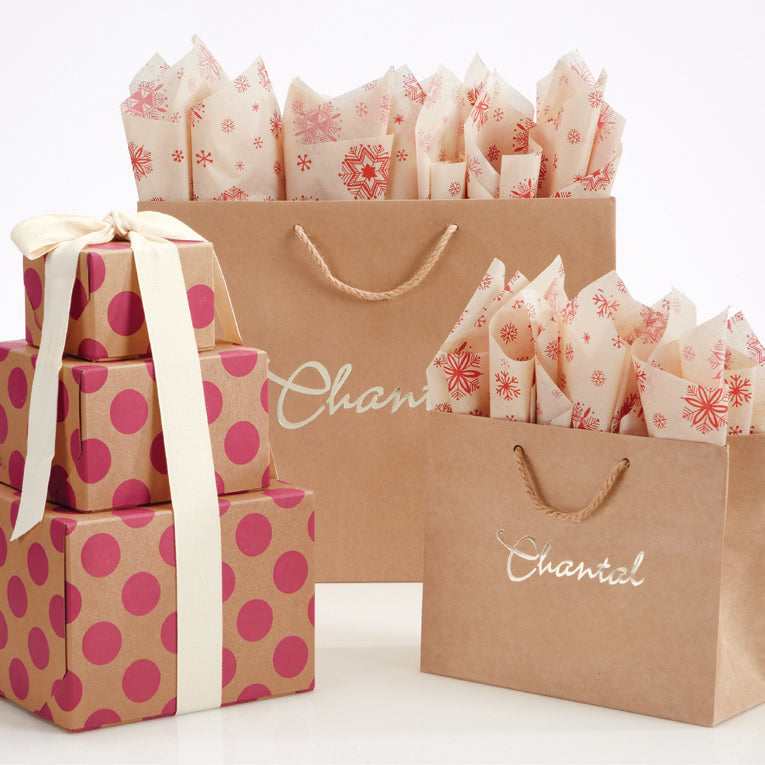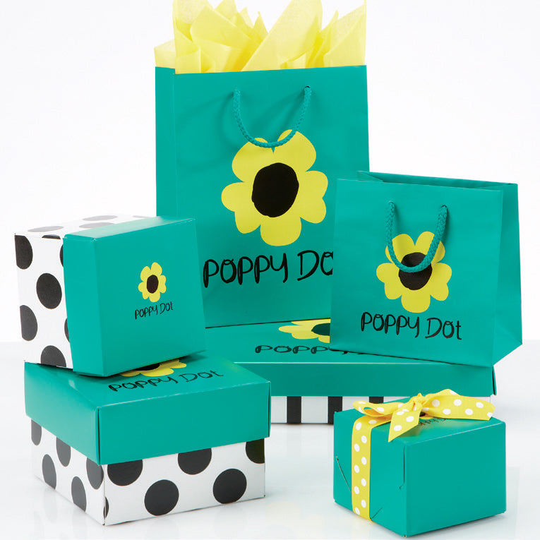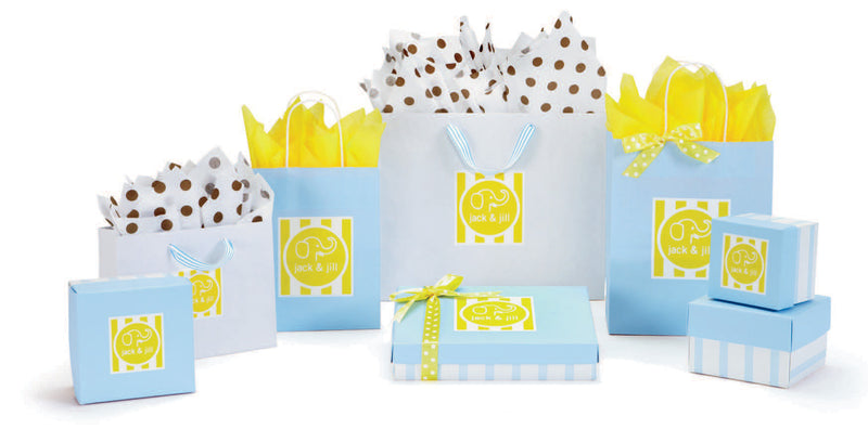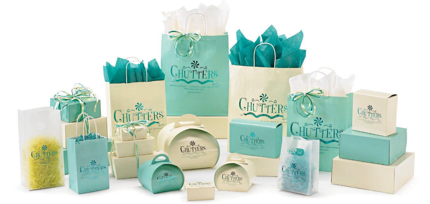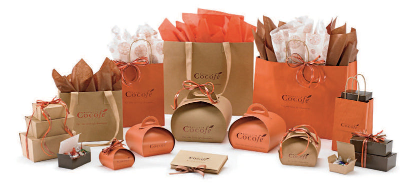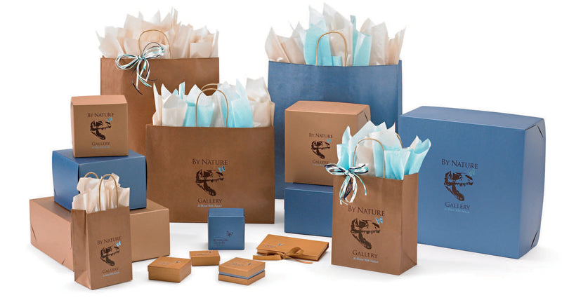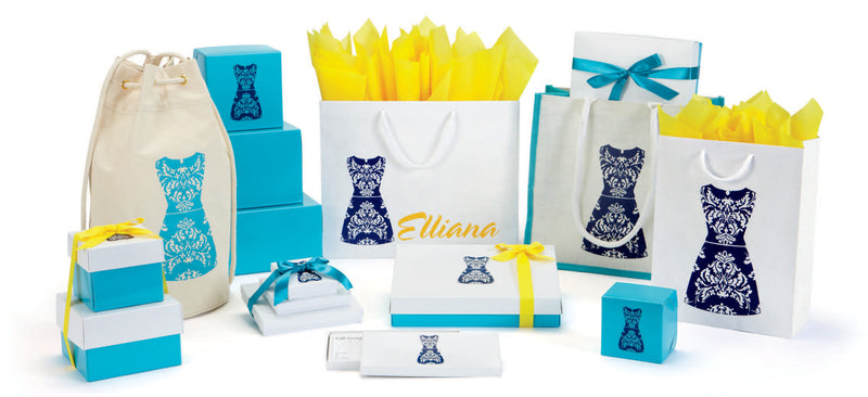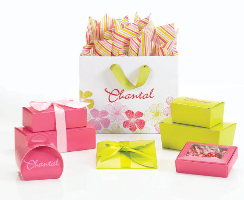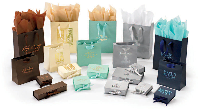 Get our stock boxes in various shapes and sizes customized in a color that matches your brand and printed with your logo. Coordinate with matching shopping bags to make your store brand complete!