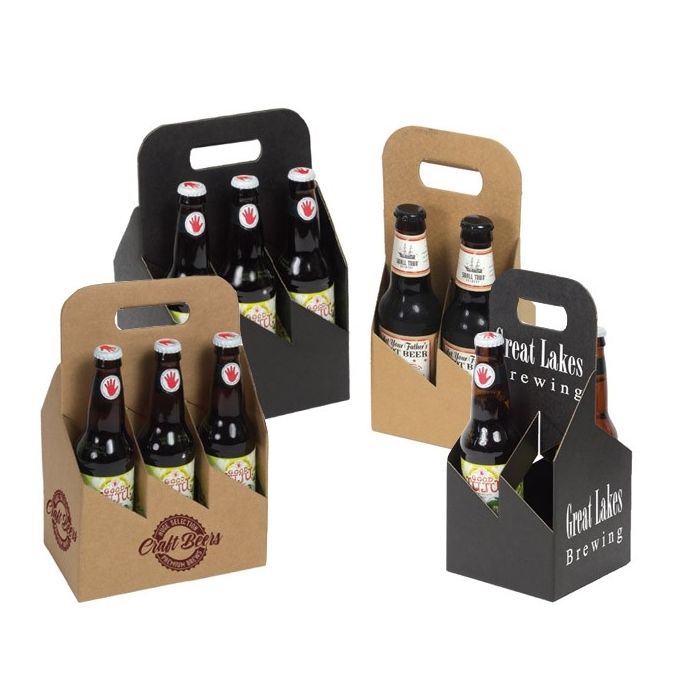 Beer Bottle Carriers - Black Kraft - 4 Bottle Beer Carrier / 5-1/8 x 5-1/8 x 11-3/8" / Sample/1 is backordered and will ship as soon as it is back in stock.