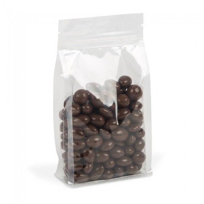 You can heat seal the tops of the bags to provide a tamper proof barrier before selling your snacks. Customers can tear the top off at the tear notch, while leaving a resealable closure below. Kraft Pouches are 5.5 mil thickness and Clear Pouches are 4 mil thickness.