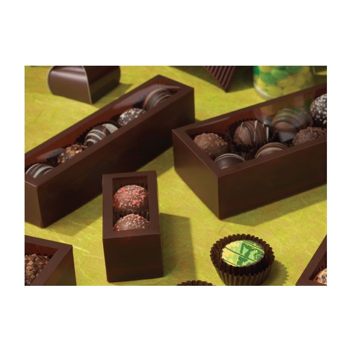These candy boxes are made from FDA compliant P.E.T. material, which is food safe, recyclable, and slightly flexible. Candy trays are sold separately.
