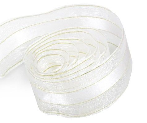 Chic Sheer Ribbon - White / Gold - Chic Sheer Ribbon / 1-1/2" x 50 Yards / Roll/1 is backordered and will ship as soon as it is back in stock.
