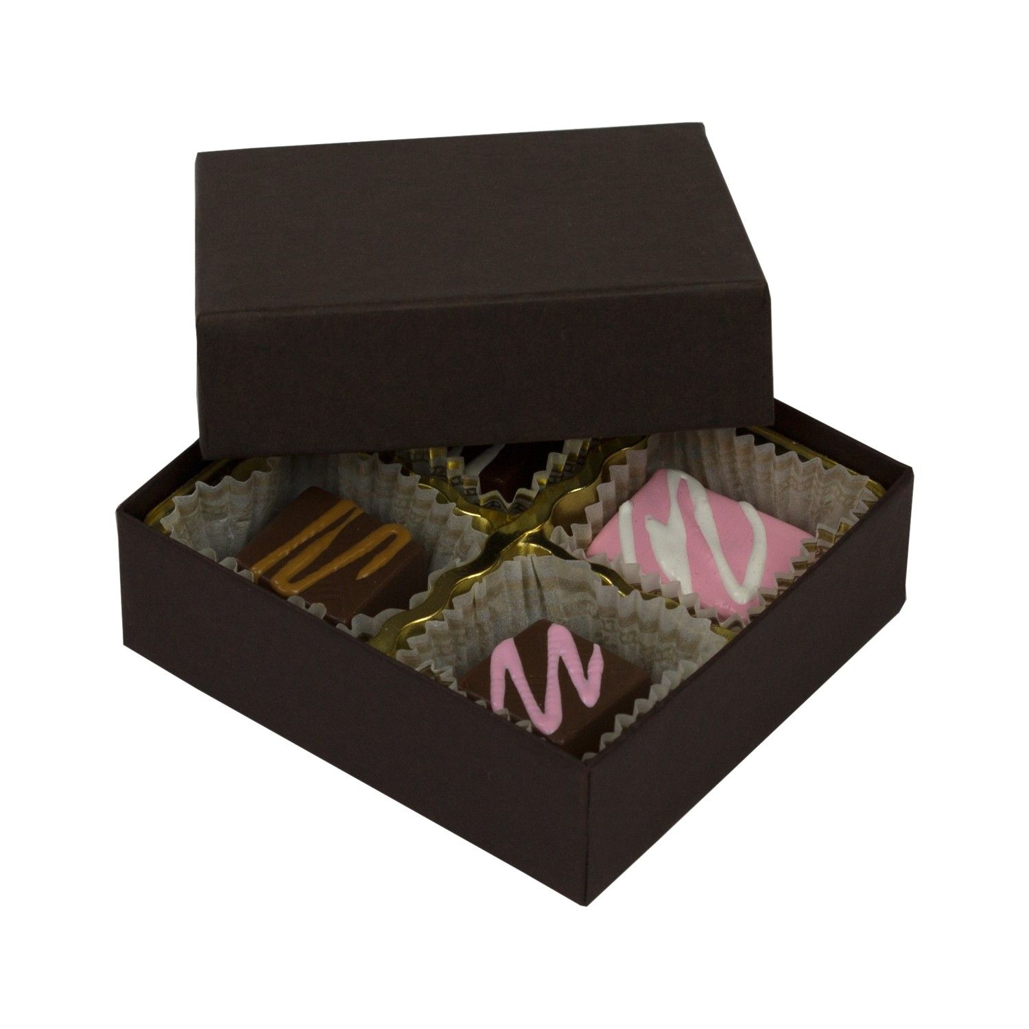 Dark Chocolate Rigid Candy Boxes - (1/8 lb) 3-1/2 x 3-1/4 x 1-1/8" / Sample/1 is backordered and will ship as soon as it is back in stock.