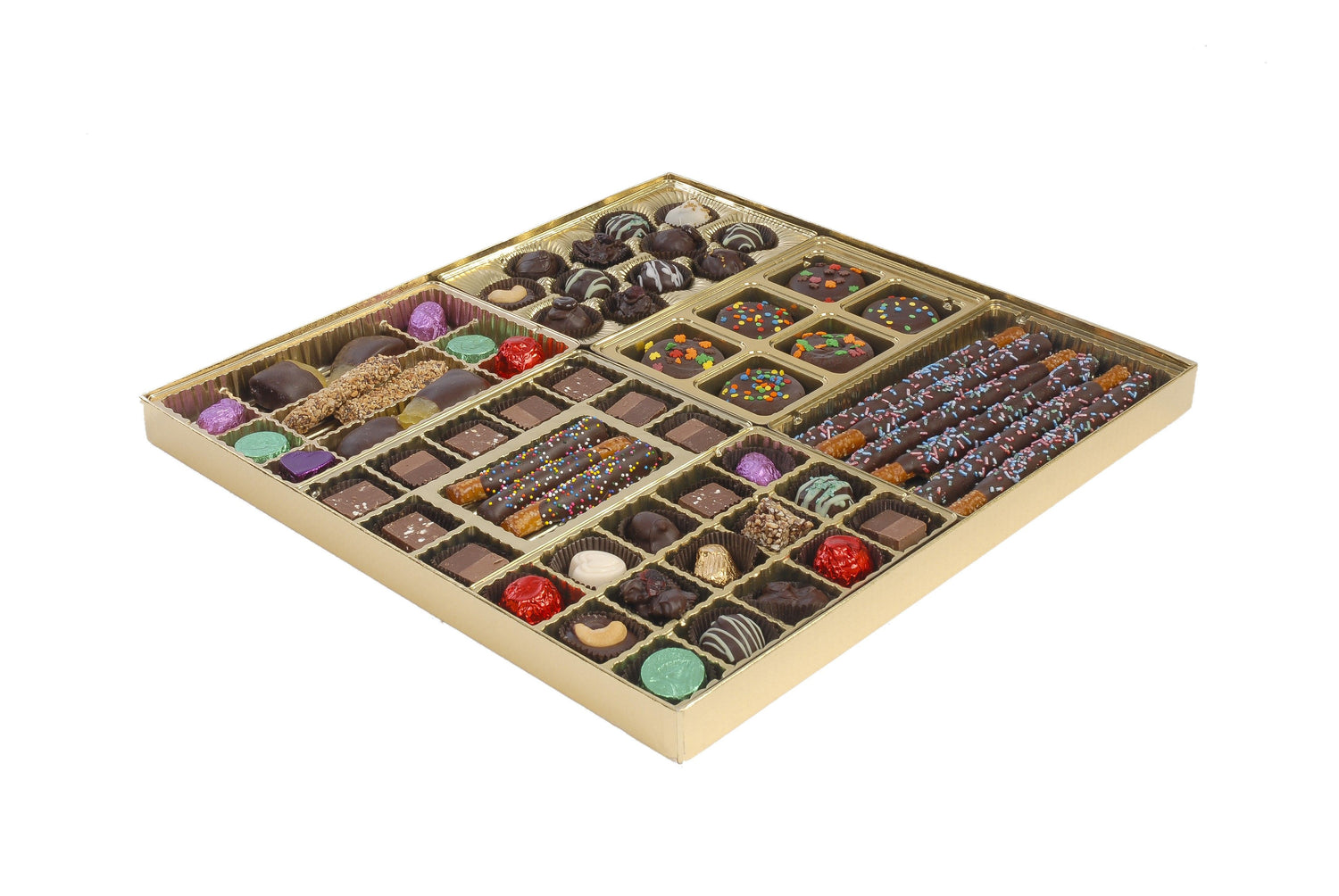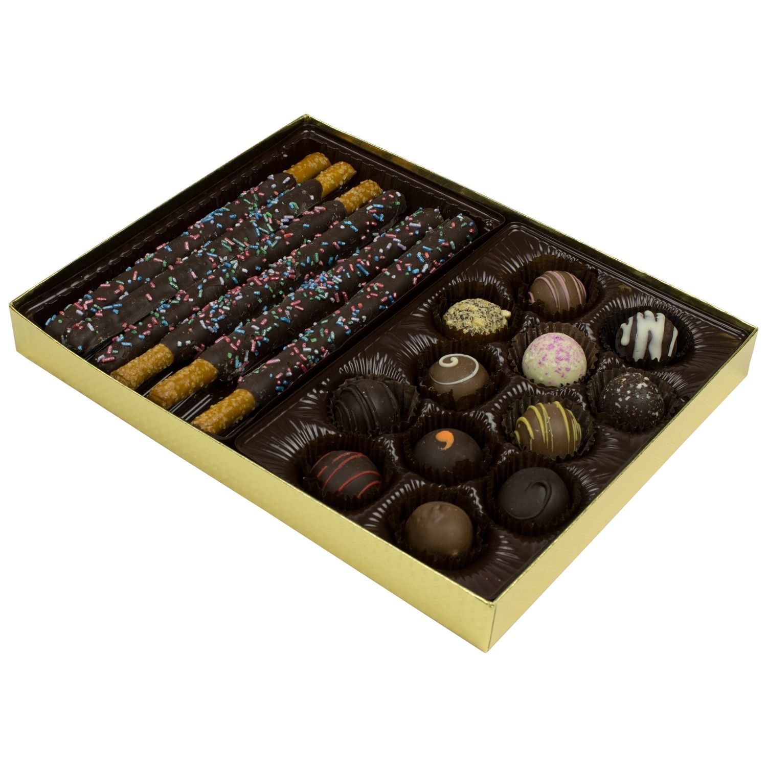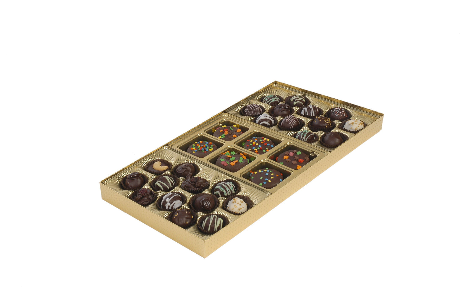 Our Rigid Candy Boxes Collection features a system of trays that can be cut to fit several box sizes. See the dropdown menu options to choose the sizes you need for each box.