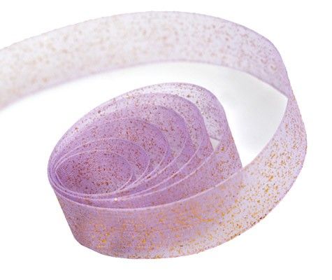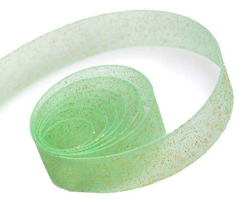 Elegant sheer ribbon with gold glitter sparkles.