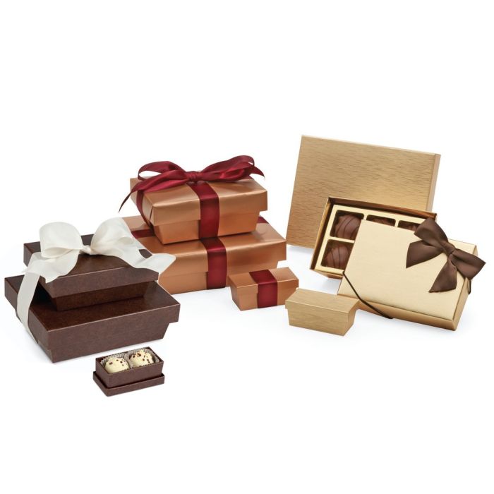 Lux Setup Ballotin Boxes - Gold - Set Up Candy Box / (1 lb) 6-1/4 x 4-3/4 x 2-1/8" / Sample/1 is backordered and will ship as soon as it is back in stock.