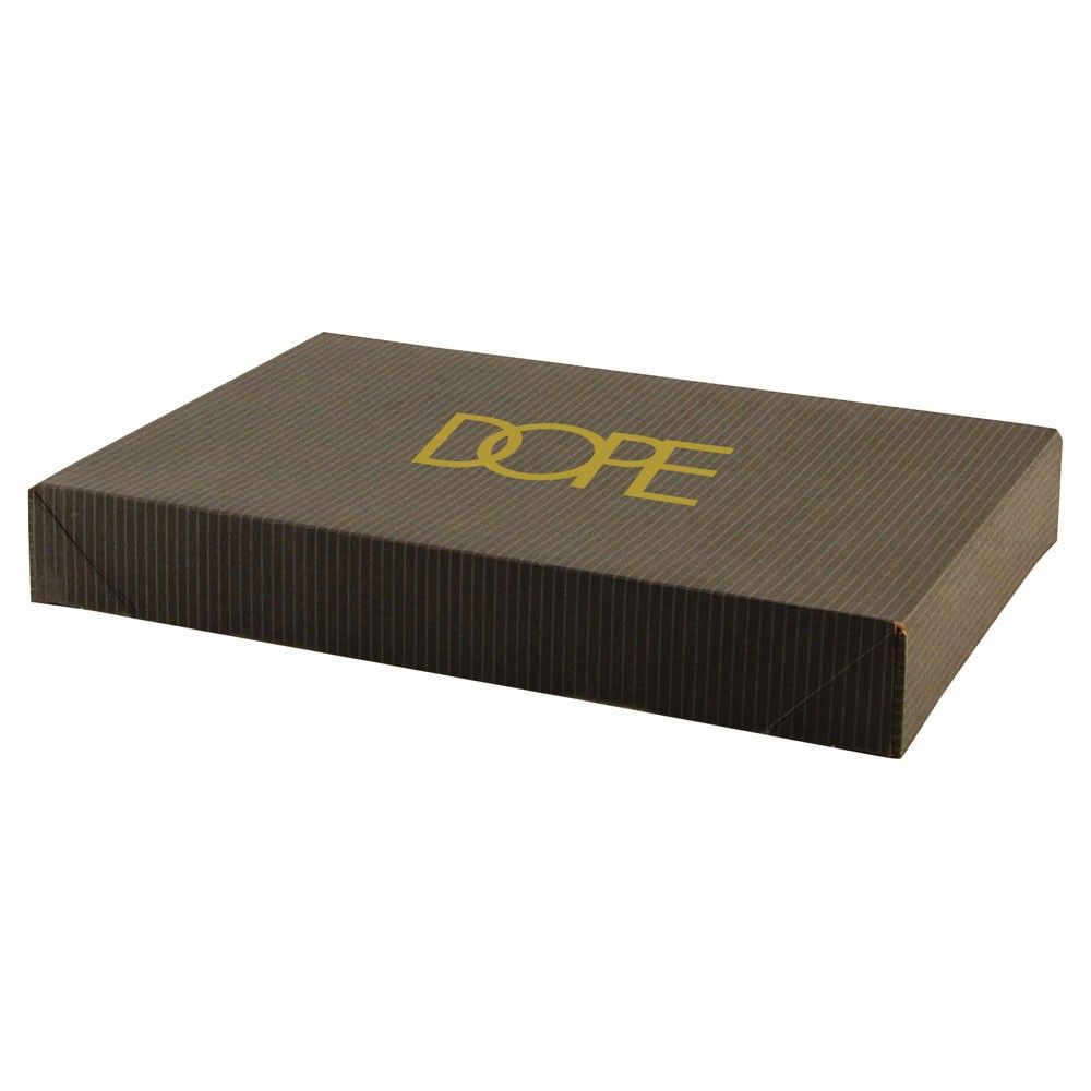 Boxes ship flat for easy storage. In stock and custom colors available. 100% recycled materials. Our Kraft boxes are 100% post consumer. Our white boxes contain 80-100% post consumer fibers.