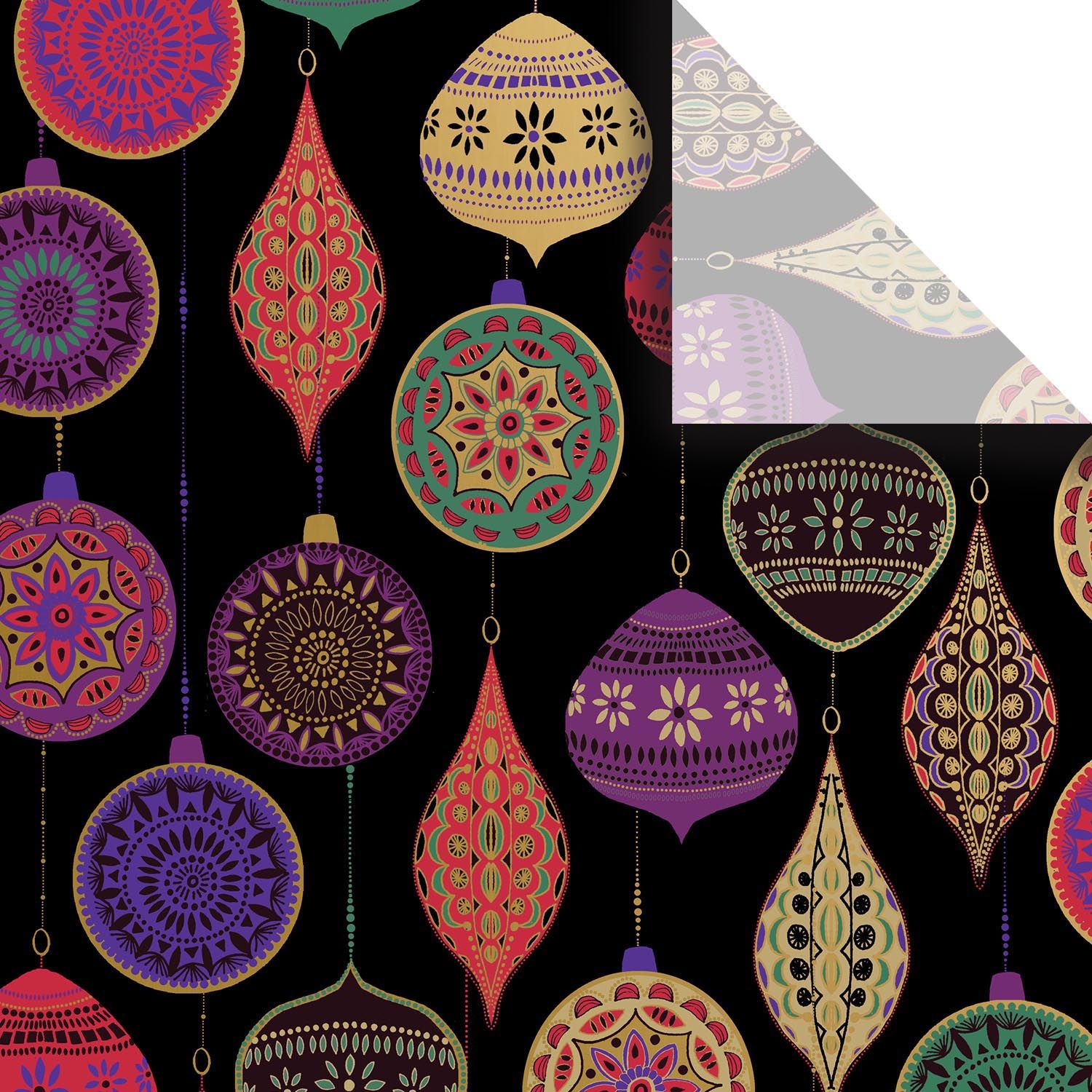 Our Opulent Ornament Christmas Collection features intricately decorated ornaments in shades of red, purple, green, and gold on a black background. This elegant design exudes a luxurious holiday ambiance with a global, artisanal touch. This line is offered in Gift Bags, Wrapping Paper, Shipping Boxes, and Mailers.