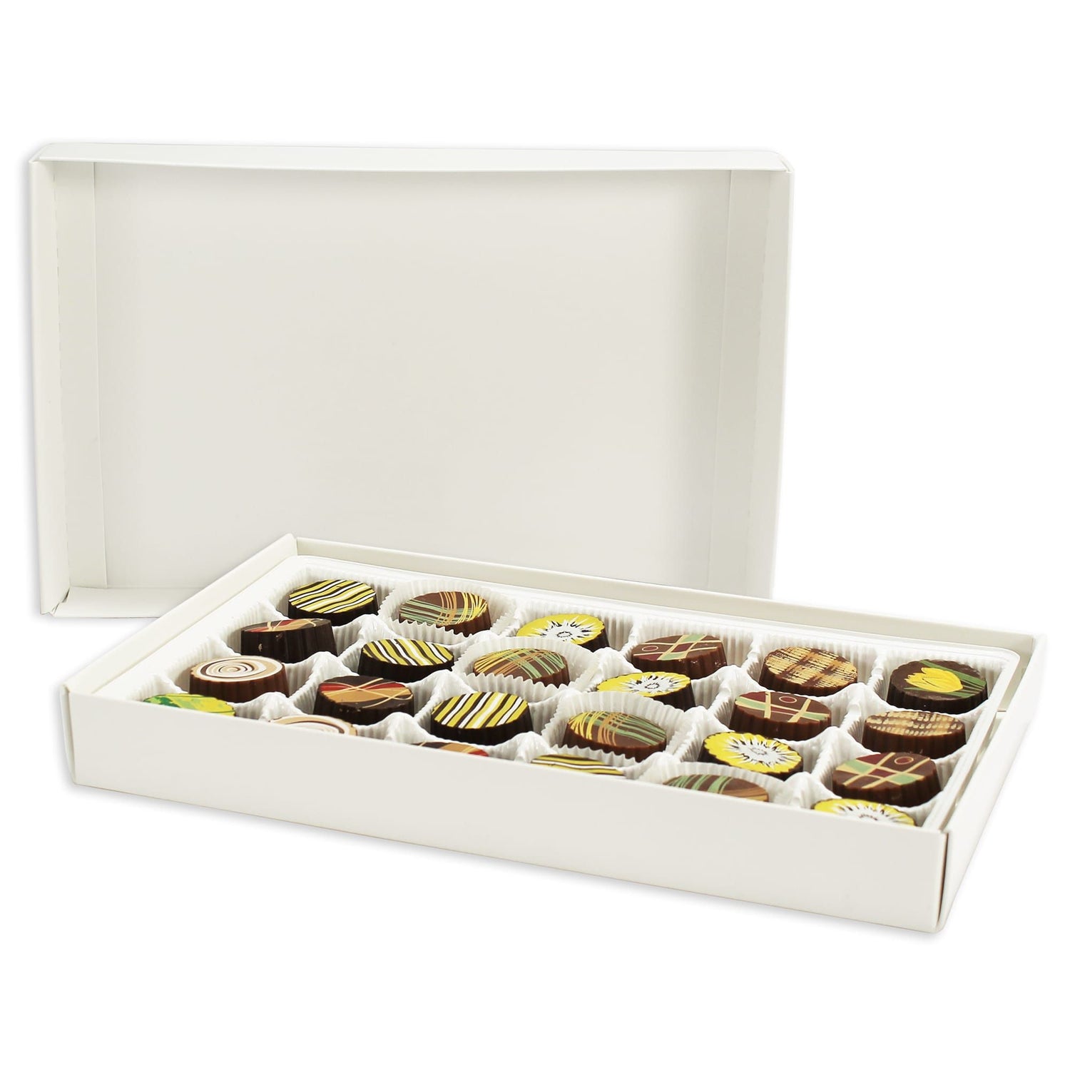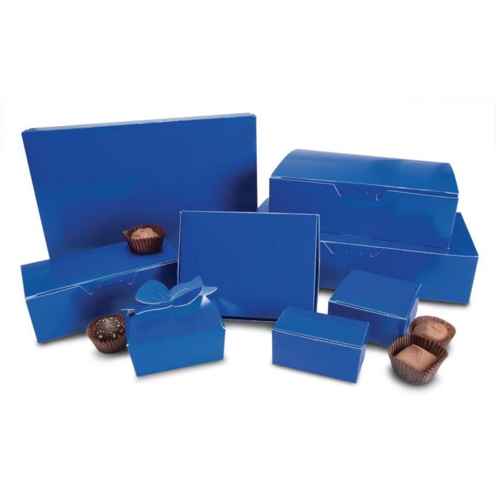 Available products include a boxes with a die cut window (made in 1/4 lb. capacity), a windowless lid (made in 1/2 lb. capacity as well as two 1 lb. capacity lids in different dimensions), a regular base, and a deep base. You may choose to use candy cups with this product. For more information on candy cups, please see: HERE