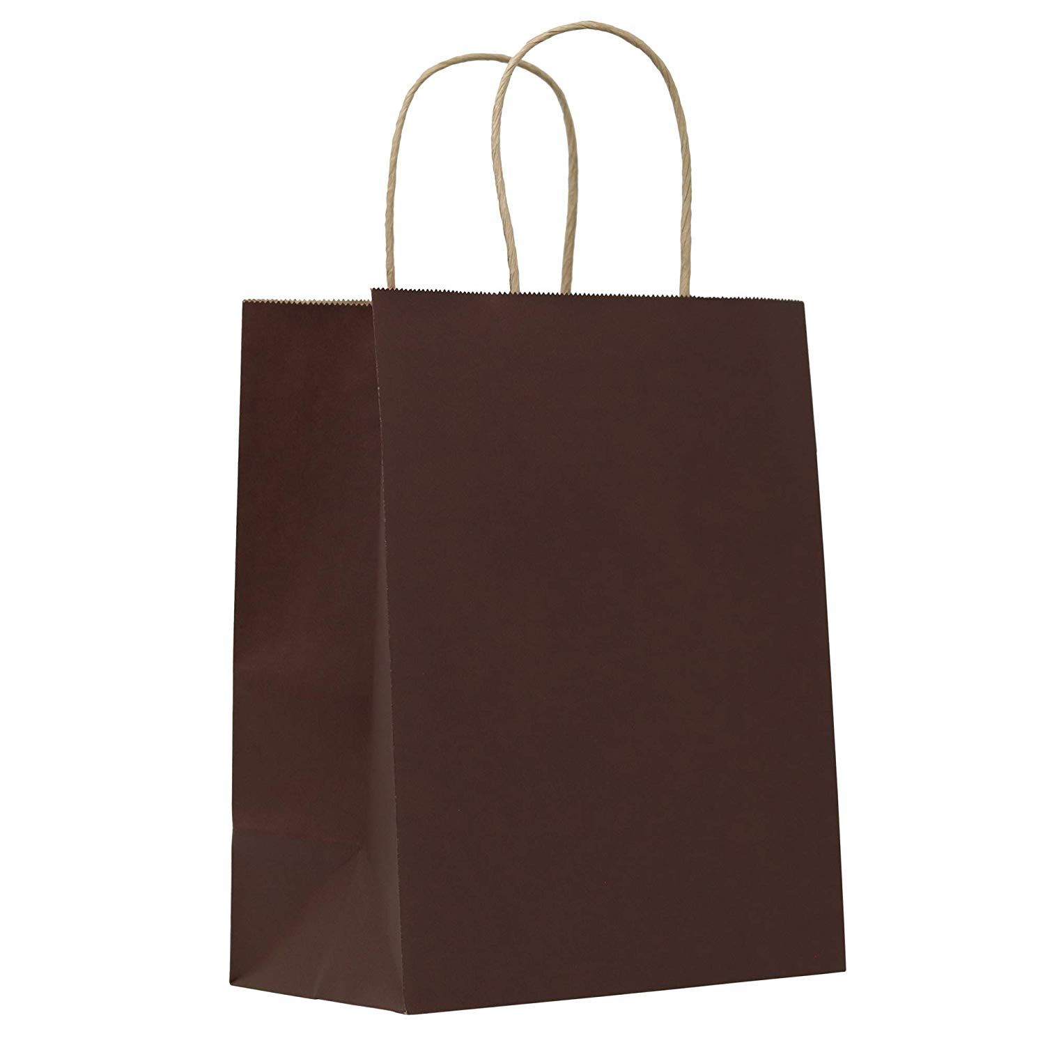 These bags come with no design, allowing you to make them your own via logo printing, stickers, and more. Bags feature a twist paper handle and natural kraft interior. Tinted paper shoppers contain 10-15% recycled materials. Please make note of the dimensions offered before placing your order. Sold in cases.