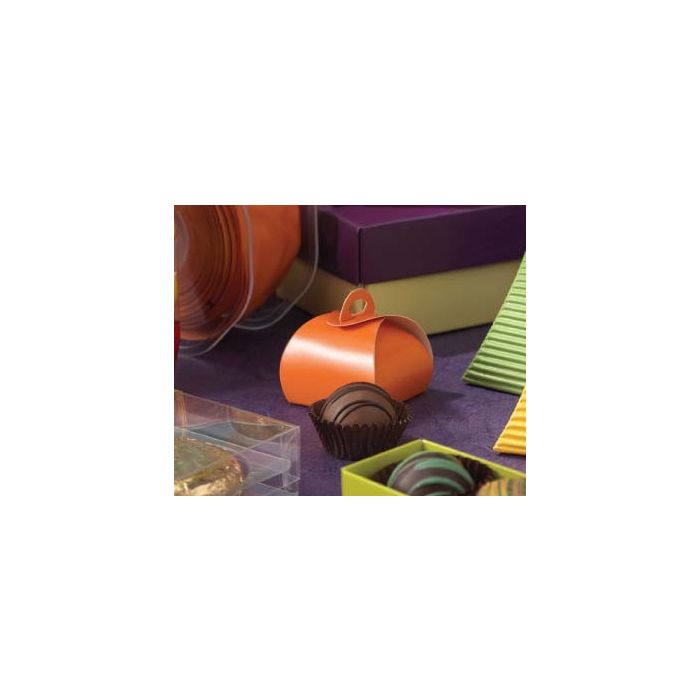 Over a dozen color options are available to match perfectly to your theme. Place your candy or truffle inside then tie a ribbon through the handle for a complete look.
